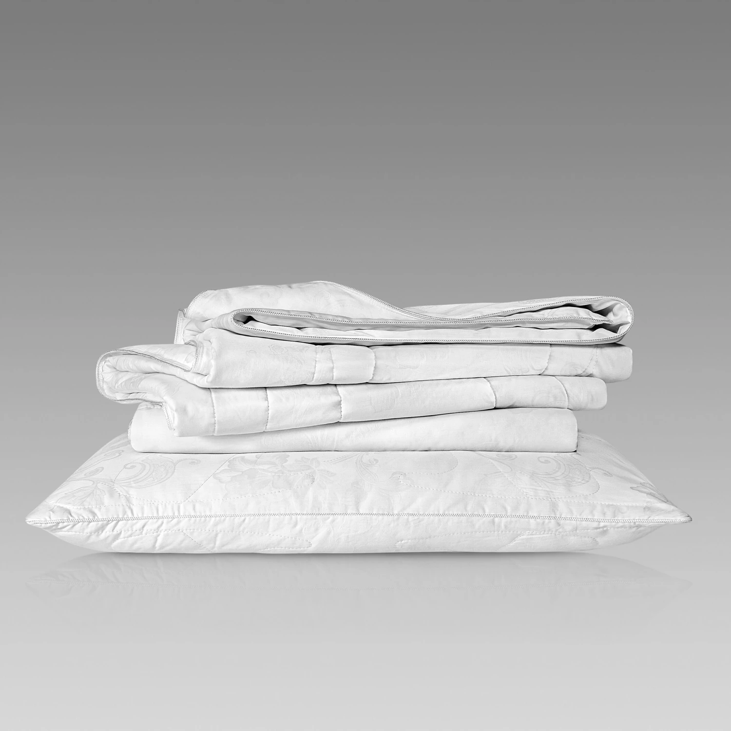 Being the thinnest fiber among vegetable fibers, Kapok is elastic, which allows it to restore its shape well. In addition, Kapok has high wear resistance, and its temperature-regulating properties are similar to natural silk. The collection and processing of this fiber are done manually, and the processing does not require the use of chemicals, which makes the product completely eco-friendly and safe. Natural Mulberry silk is the most durable natural fillers available. It has antibacterial properties, which makes tactile interaction with it good for your health. Mulberry is 97% protein, and contains 18 essential amino acids, including glycine which reduces stress levels. Being a natural thermoregulator, Mulberry silk quickly absorbs heat and maintains the same temperature regardless of environmental conditions, creating an optimal microclimate. The duvet insert ‘Harmony’ is made of 100% cotton of the original jacquard weave with a density of 300TC. The threads used in this dense and soft fabric are made only from long cotton fibers collected by hand, so the cover has a special strength and can withstand repeated washing.