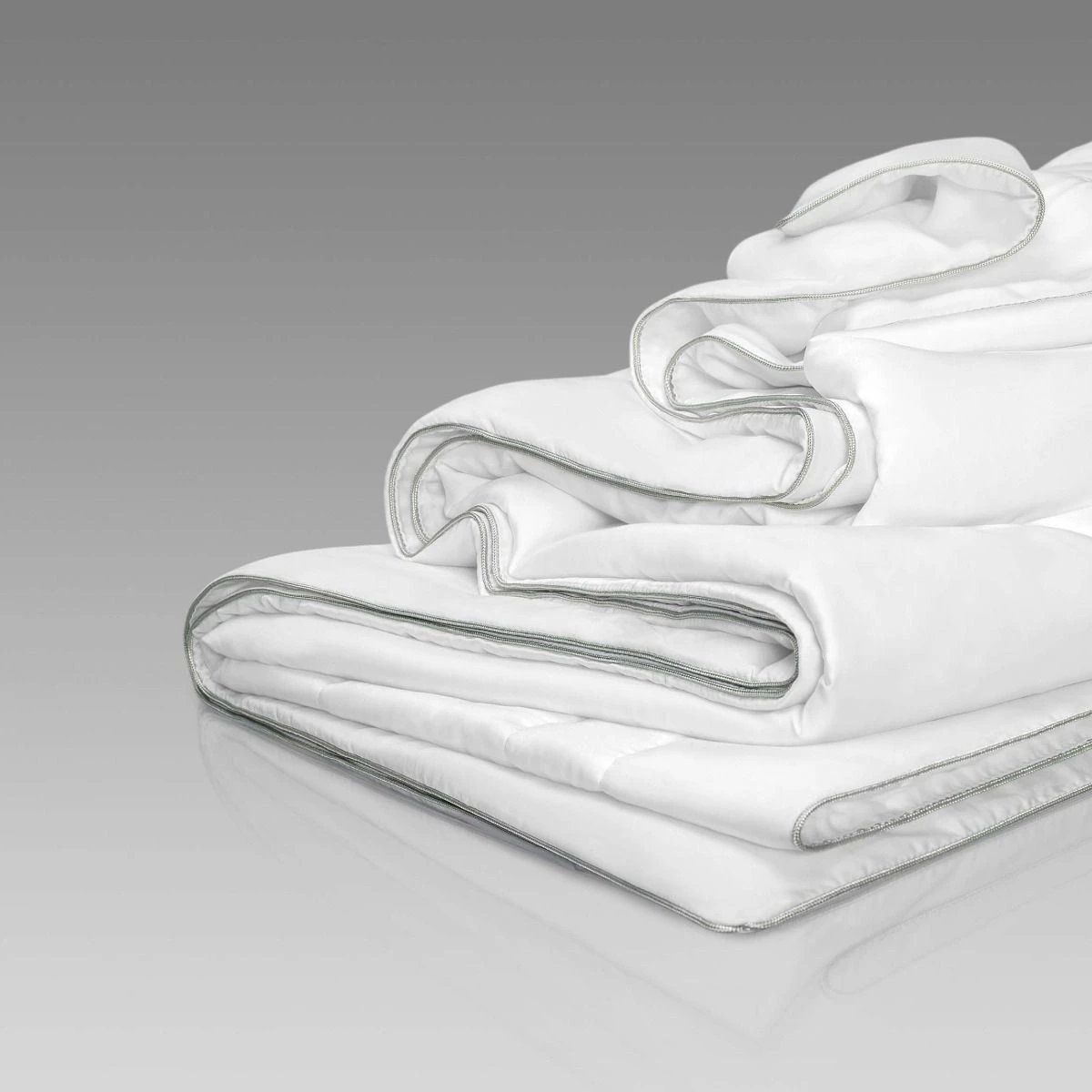 This tactilely pleasant filler resembles silk fibers. The duvet insert cover is made of 300TC high-density fabric. It is also made from 100% Sensotex fibers and treated with a special Kefalis solution based on Ionian seaweed extract. Such processing makes the material softer and increases its silkiness by 30%, it becomes 20% less wrinkled and 10% stronger. Thick and durable fabric “breathes”, this silky material is suitable for people with sensitive skin. The duvet insert is quilted with a special anatomical stitch and decorated with silver edging around the perimeter.