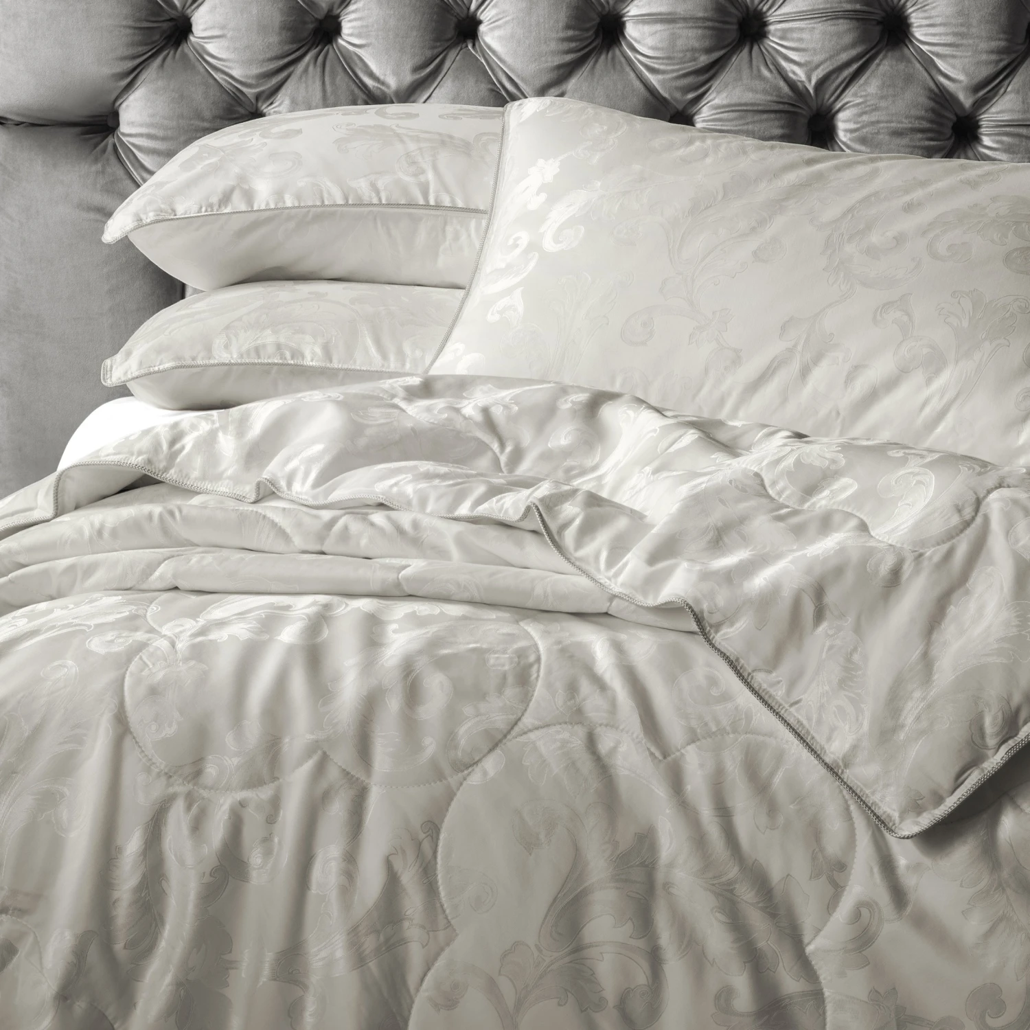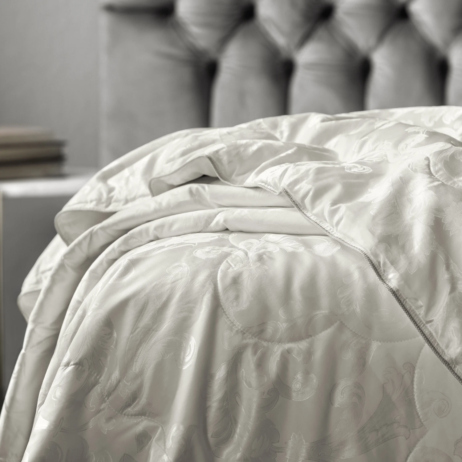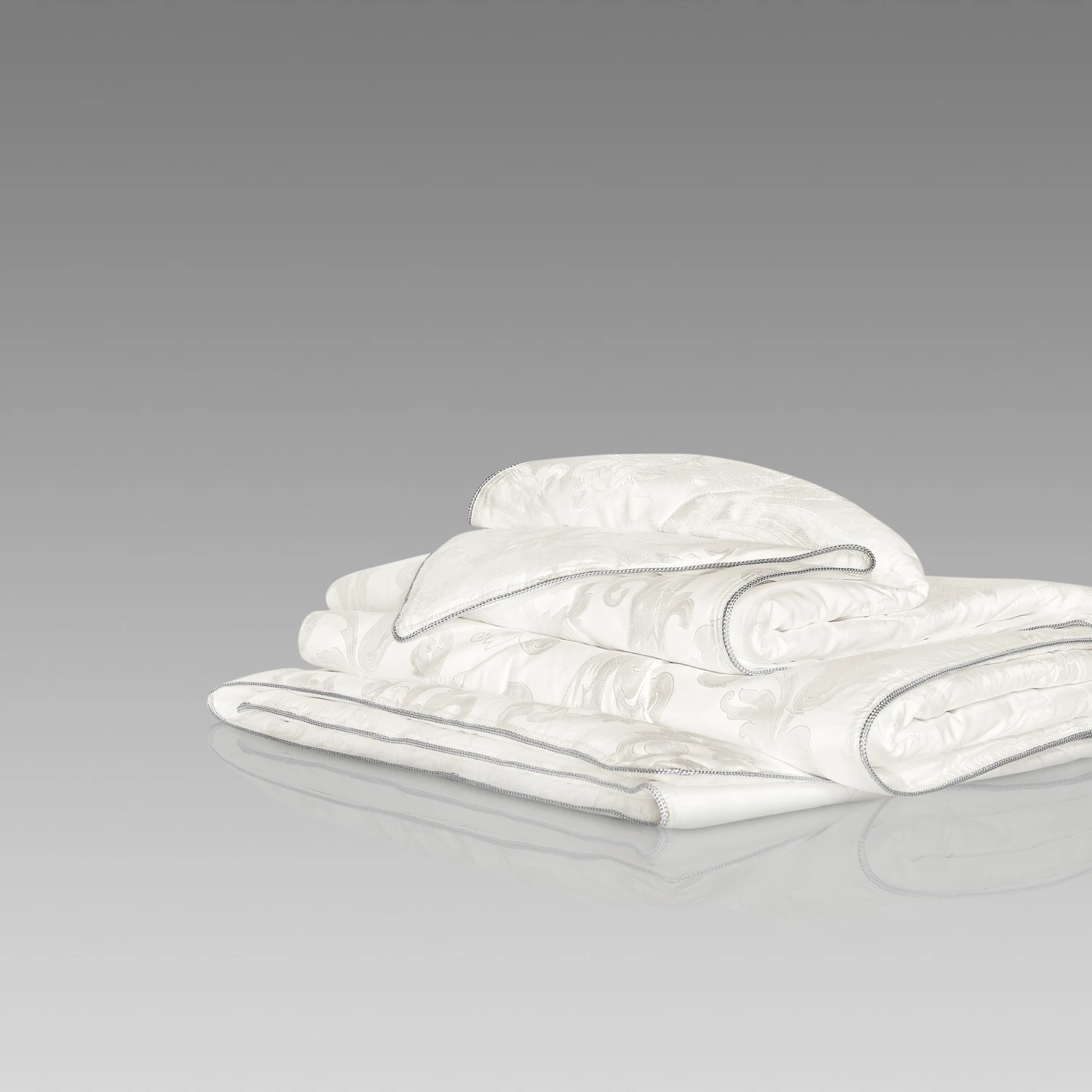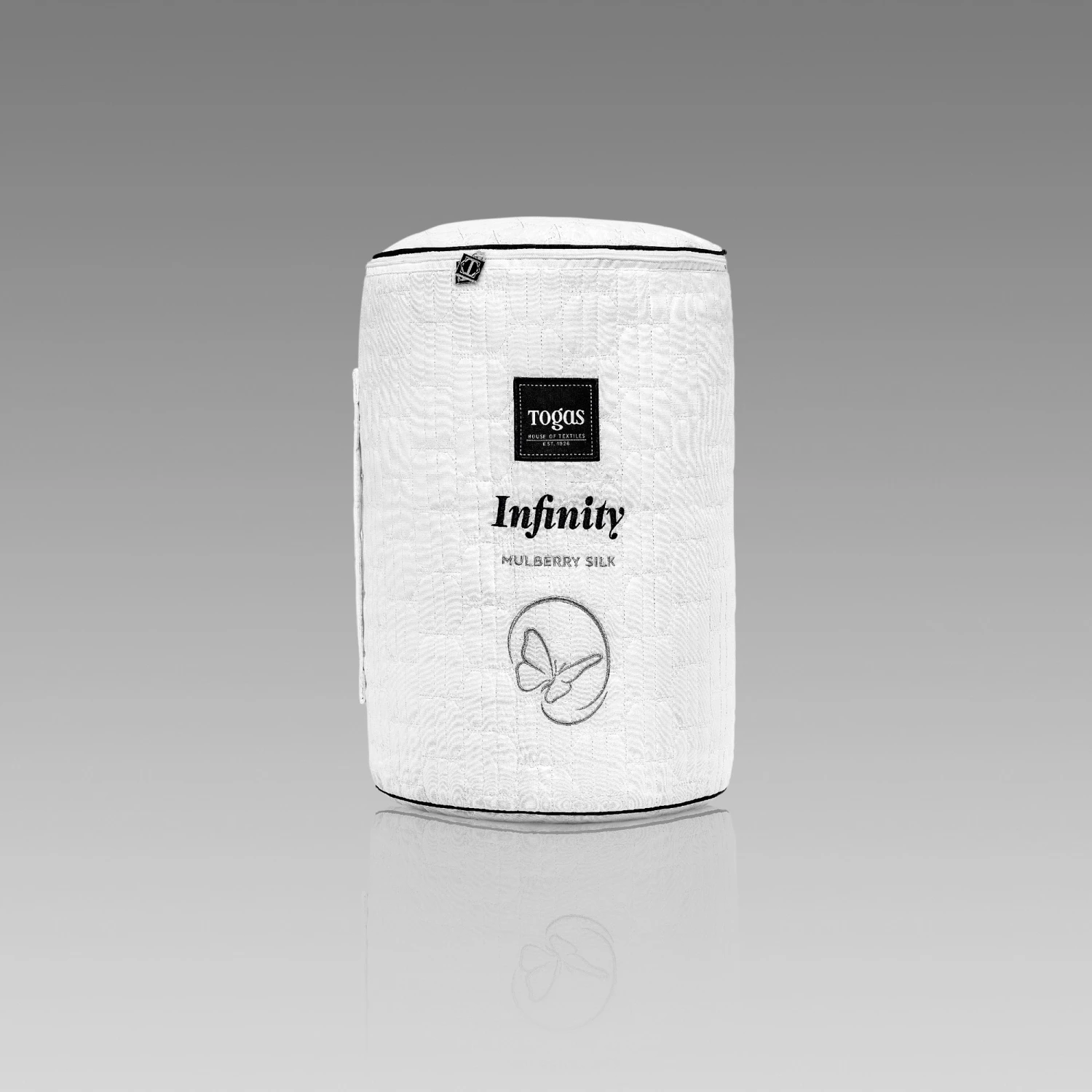 Natural silk has unique properties: it contains proteins, amino acids and trace elements that have a positive effect on the skin and the whole body.The cover of the duvet insert is made of mixed fabric: a combination of jacquard silk with the addition of practical cotton, which increases the life of the product. This material is beautiful and very pleasant to the touch. Along the perimeter of the duvet insert is sewn edging with double stitching, which gives special strength and elasticity to the edges of the product. Under the corner label is a special pocket with a zipper, which allows you to make sure the high quality of the filler used. The duvet insert is quilted with a special anatomical stitch, patented by Togas. ‘Infinity’ – a comfortable all-season version of the duvet insert.