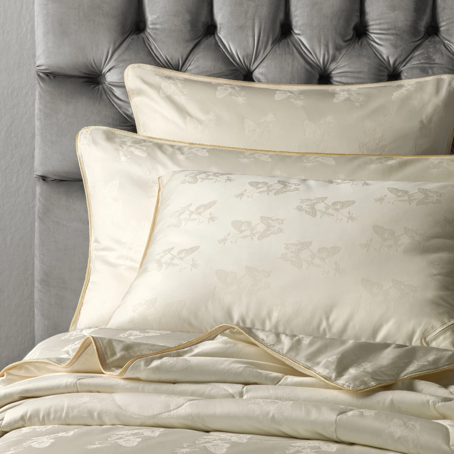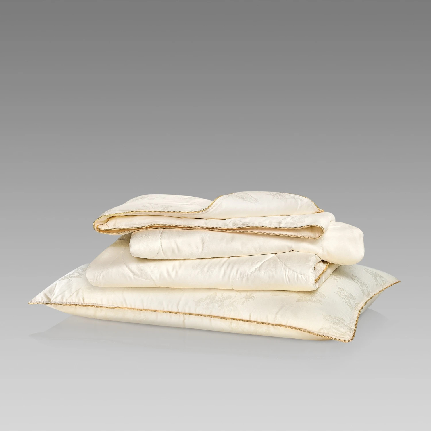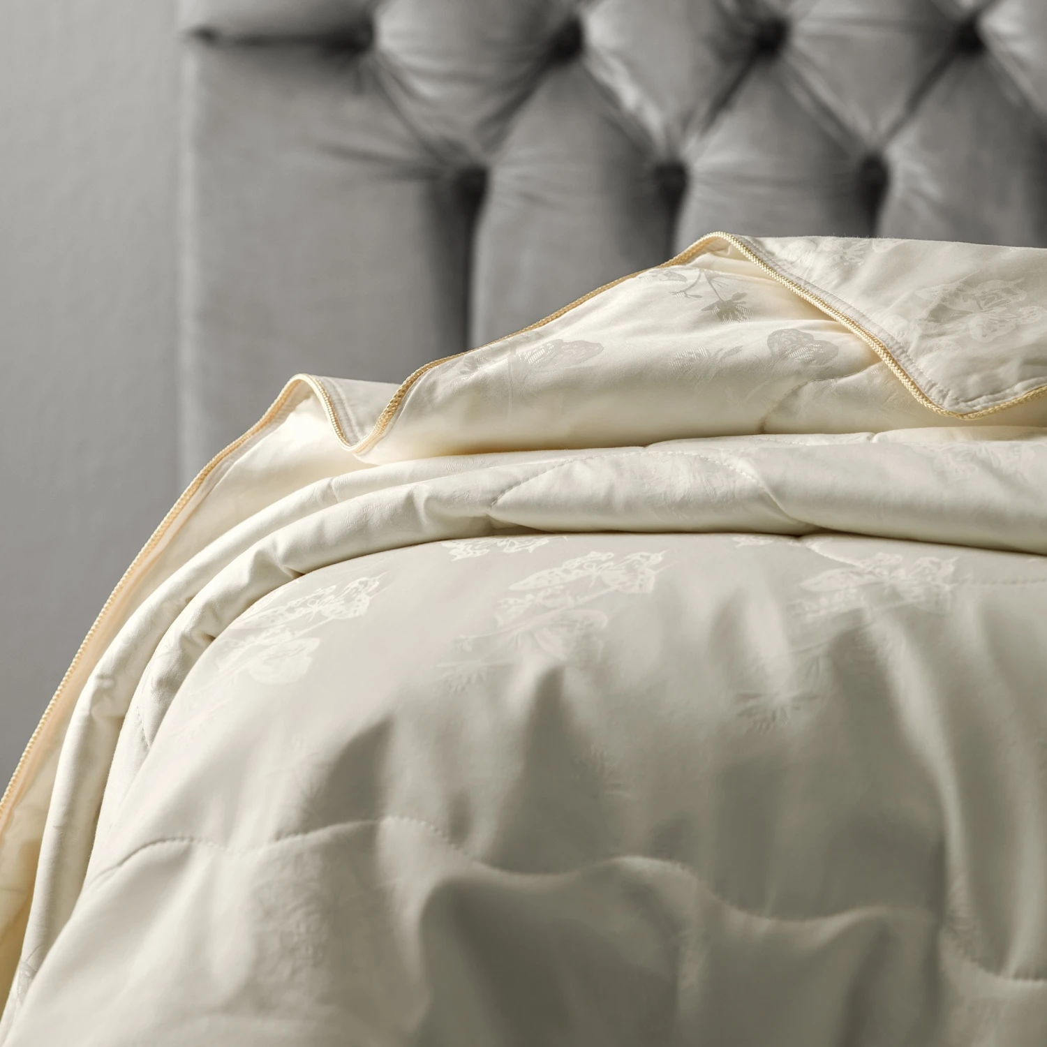 It is a natural material, very soft, light and gentle, it consists of proteins, trace elements, amino acids, which have a positive effect on the human body. Silk has a high degree of hygiene, antibacterial and hypoallergenic, it has been widely used in medicine since ancient times.The cover of the duvet insert is made of beautiful cotton jacquard. The duvet insert, in this cover, absorbs moisture and breathable. Around the perimeter of the duvet insert stitched edging with double stitching which lends strength and elasticity to the edges of the product. Under the corner label, there is a special pocket with a zipper, which allows you to make sure the high quality of the filler used. The duvet insert is quilted with a special anatomical stitch, patented by Togas. ‘Selena’ is a medium-cost product and health benefits from nature.