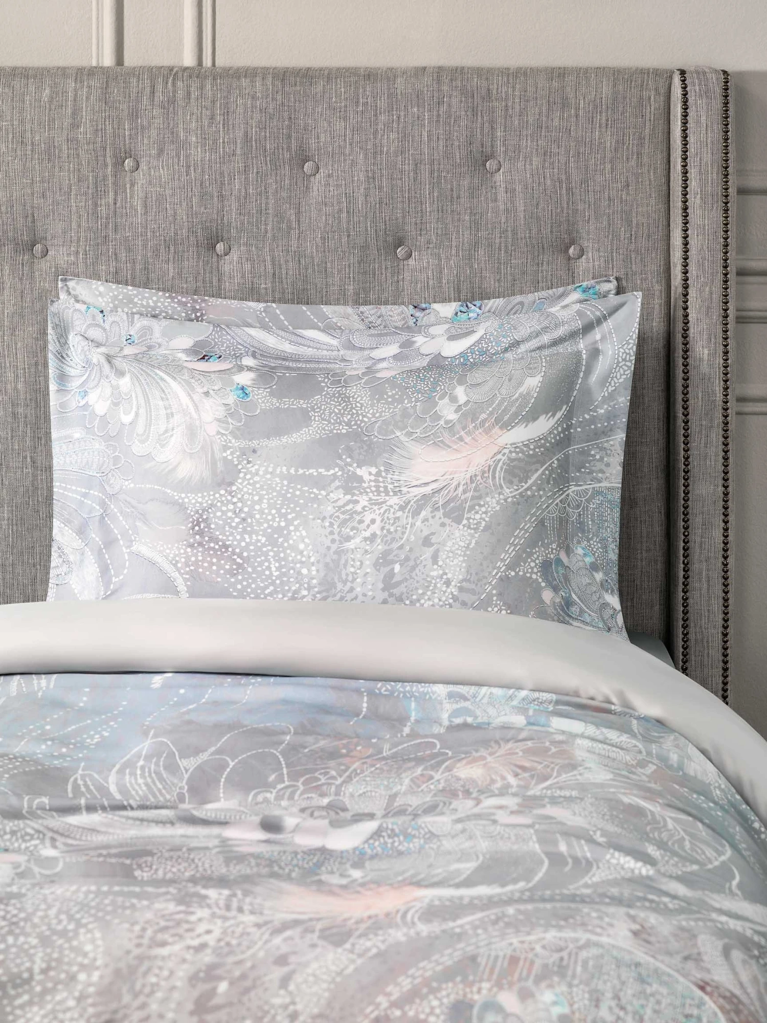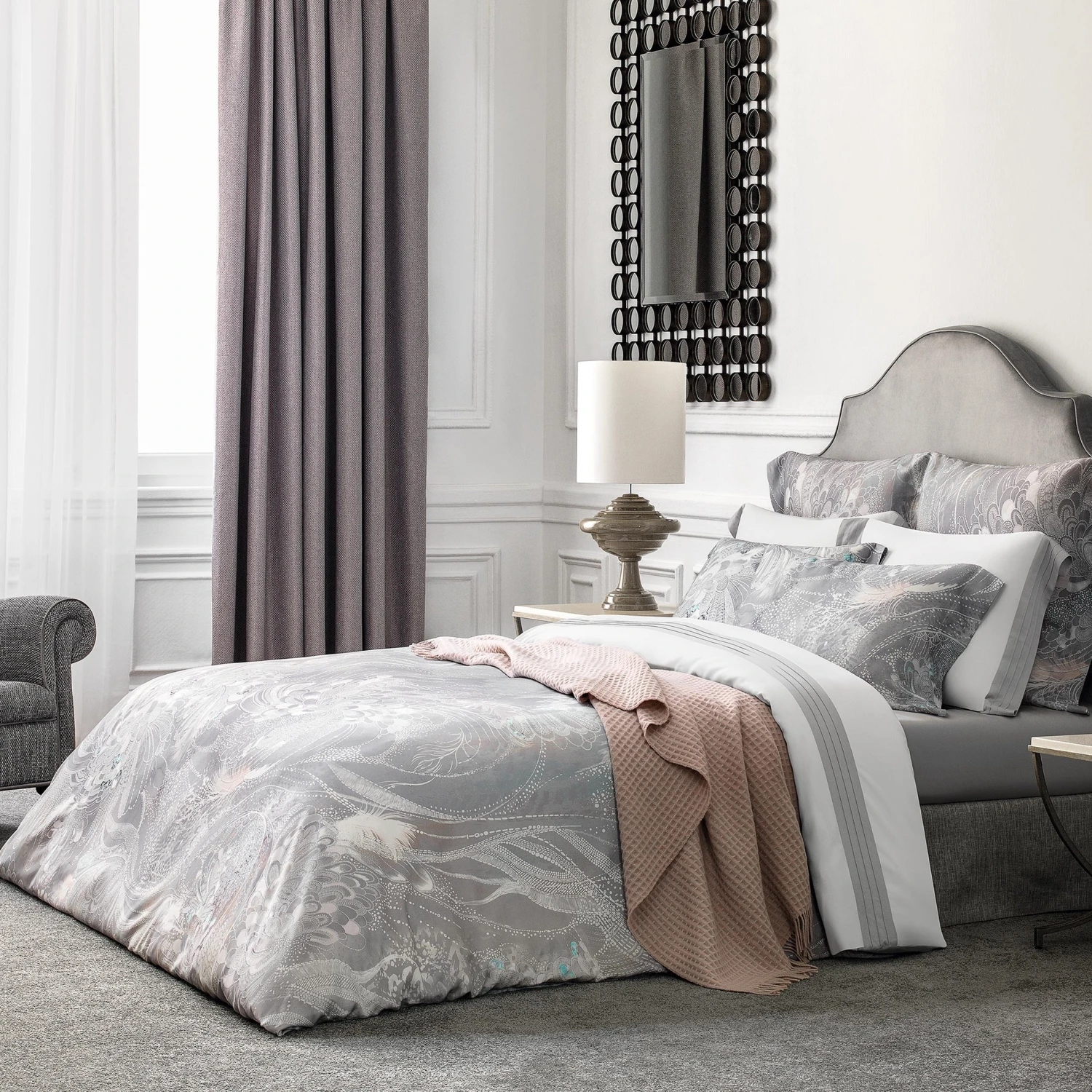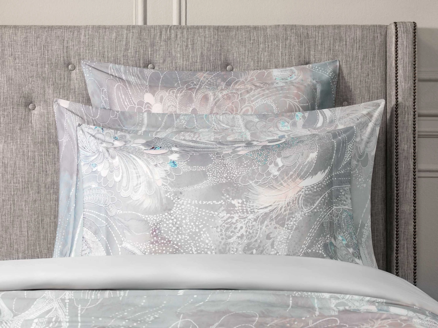 The set ‘Perla’ reflects a palette of pearl shades – from shining iridescent mother-of-pearl to rare tones of silver and pink pearls. The unusual pattern of this bed linen seems to have come from dreams. The beautiful plumage of mysterious birds, unusual lines of fabulous flowers, the radiance of the edges of precious stones – all this seems to be mixed in a misty haze of dreams.