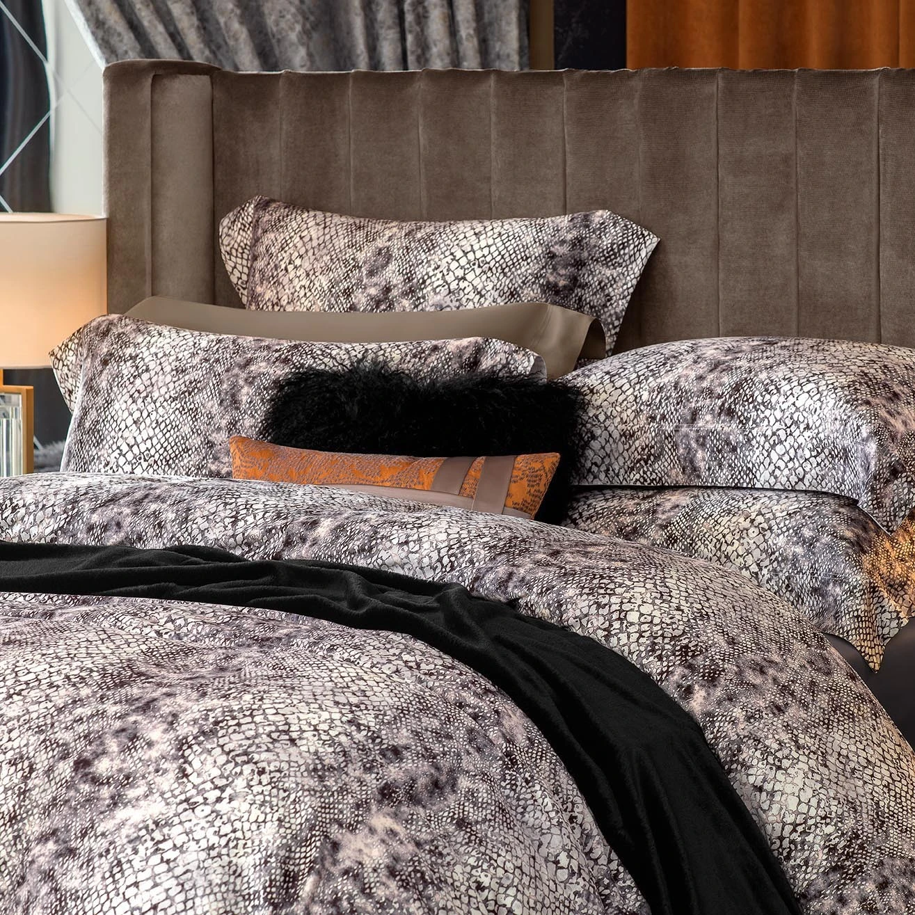 Durable fabric is well breathable and absorbs moisture, “Selisa” will last a long time without losing its original beauty. The exotic ornament of this model is a delicate, refined reptile skin pattern. The ornament seems to be applied with watercolors, it looks a little blurry, muffled. Light watercolor fuzziness softens the spectacular, extraordinary snake print.