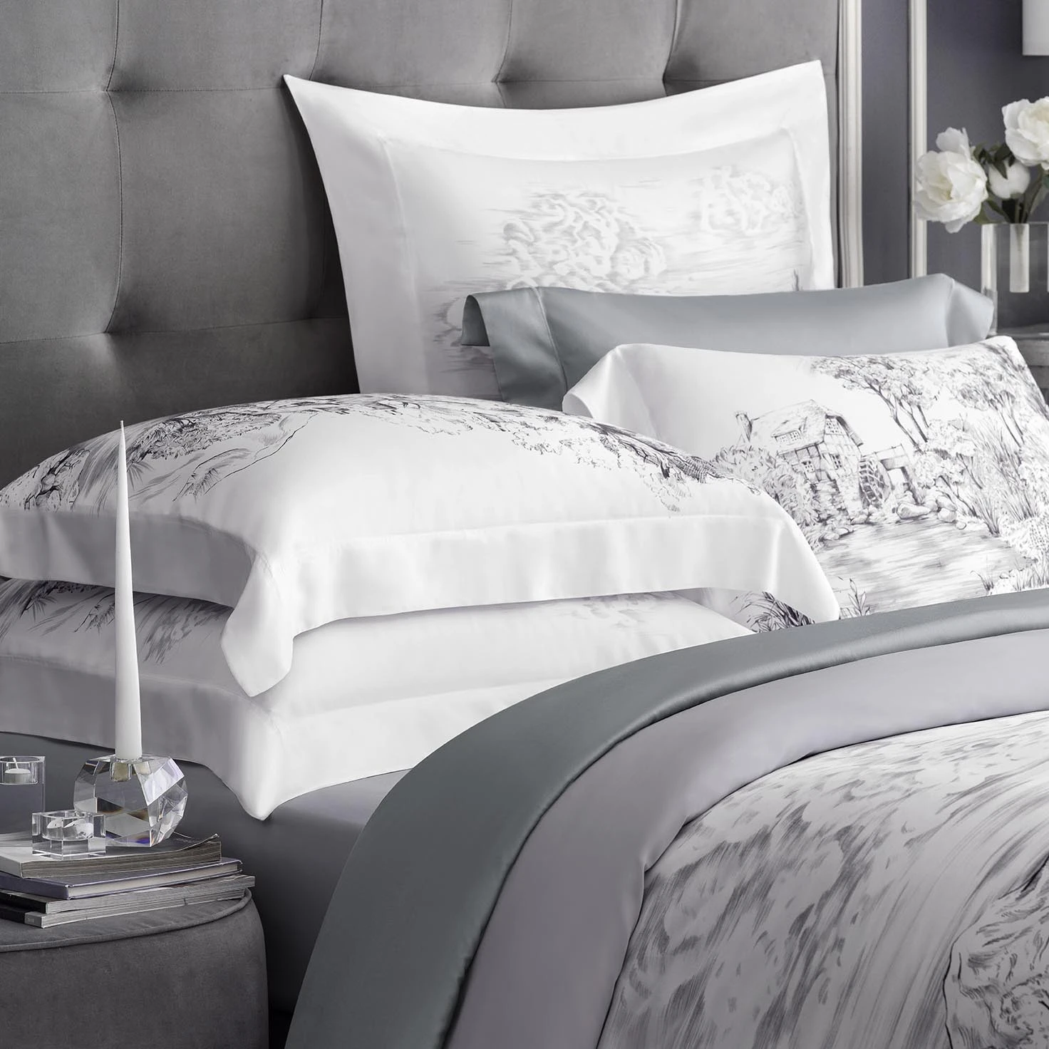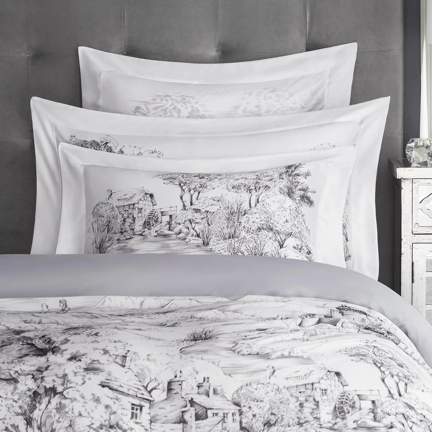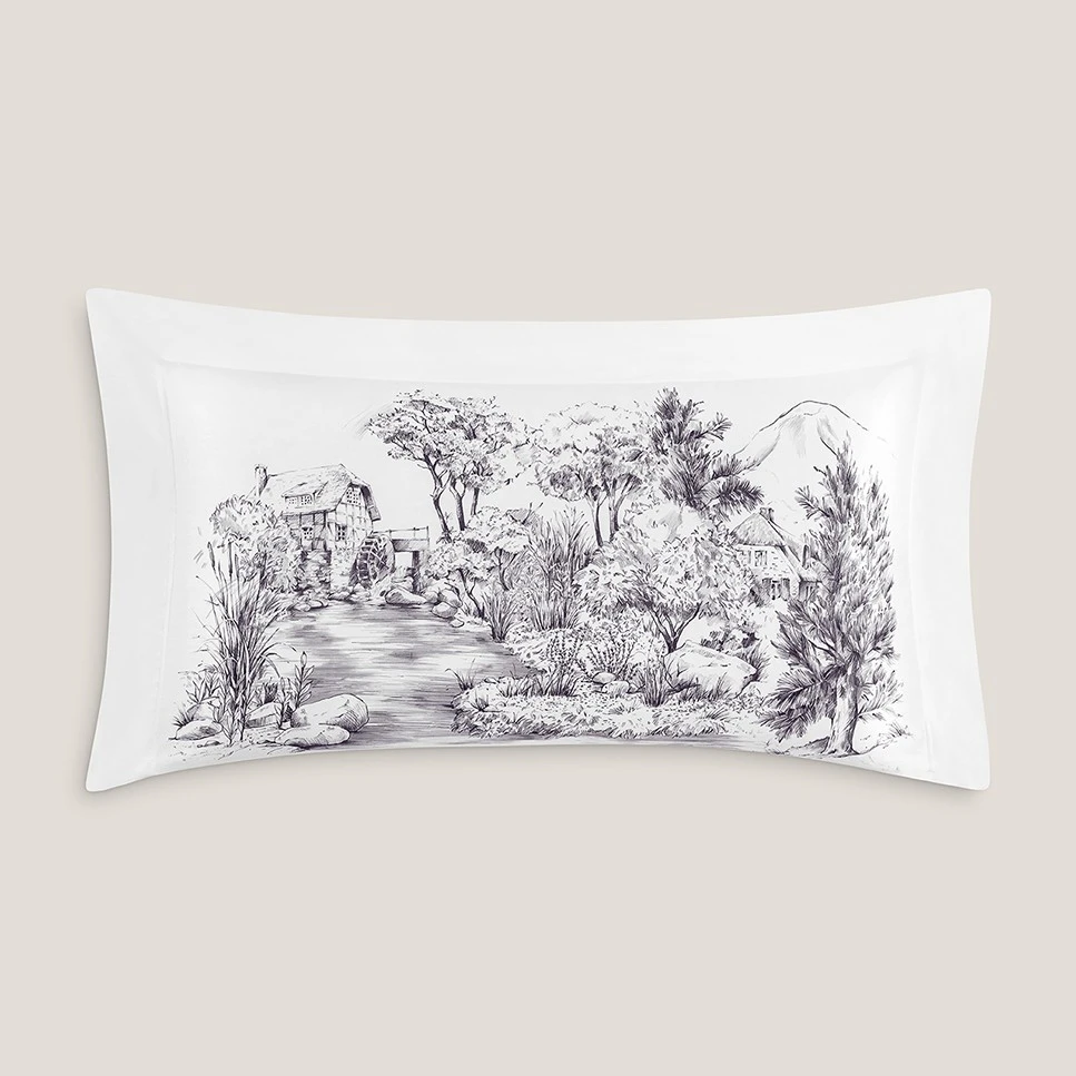The pillowcase is decorated with monochrome Toile de Jouy ornament. This famous classic pastoral-themed print appeared in 18th century France and immediately became a hit. The fine lines of the landscape in black shades look as if written on a paper with a feather and Indian ink. The pillowcase is double-sided – one view is replaced by another, equally beautiful one. The sophistication and elegance of this linen makes it the perfect addition not only to a classic setting; the charming Toile de Jouy will adorn any interior.