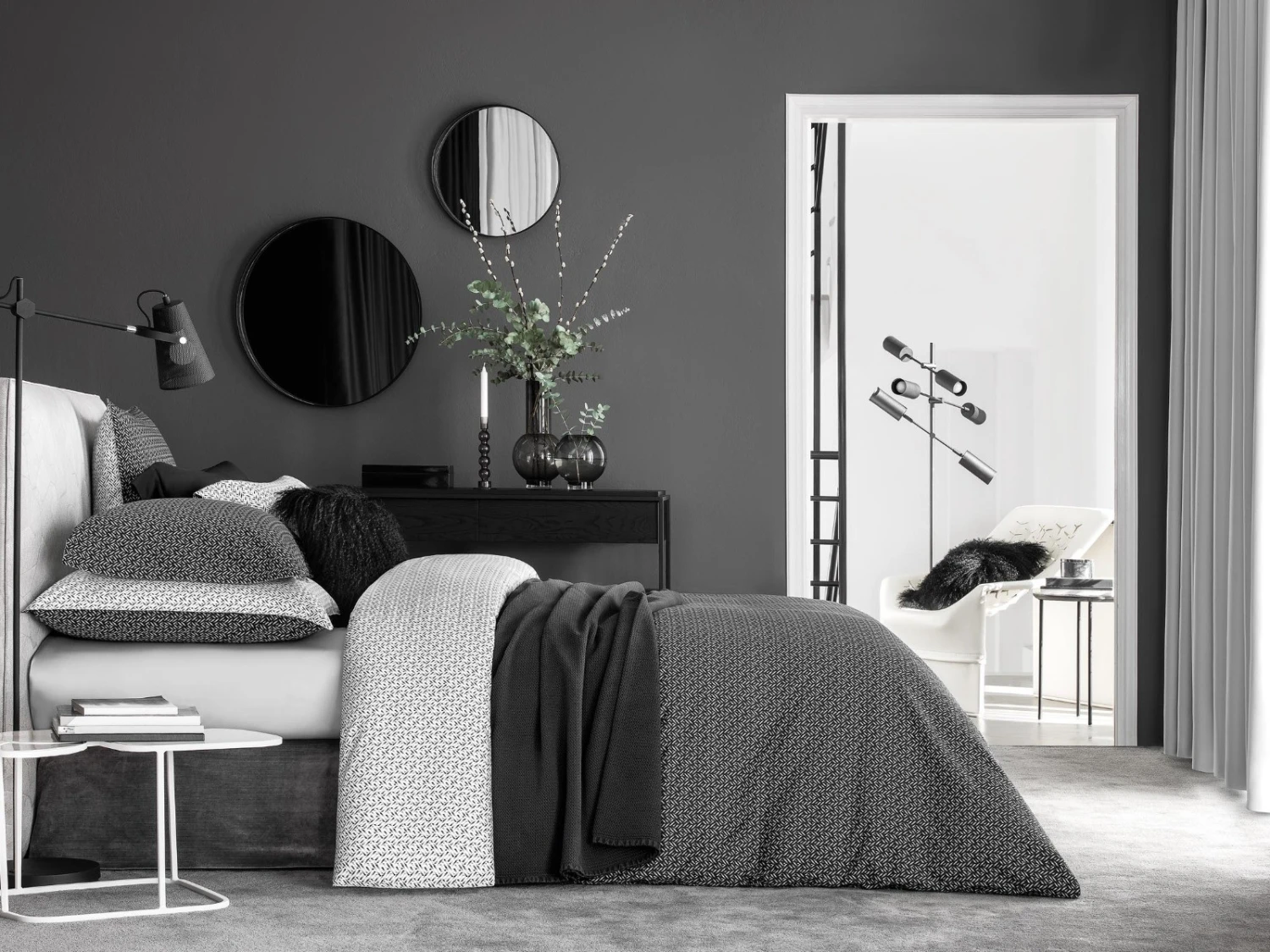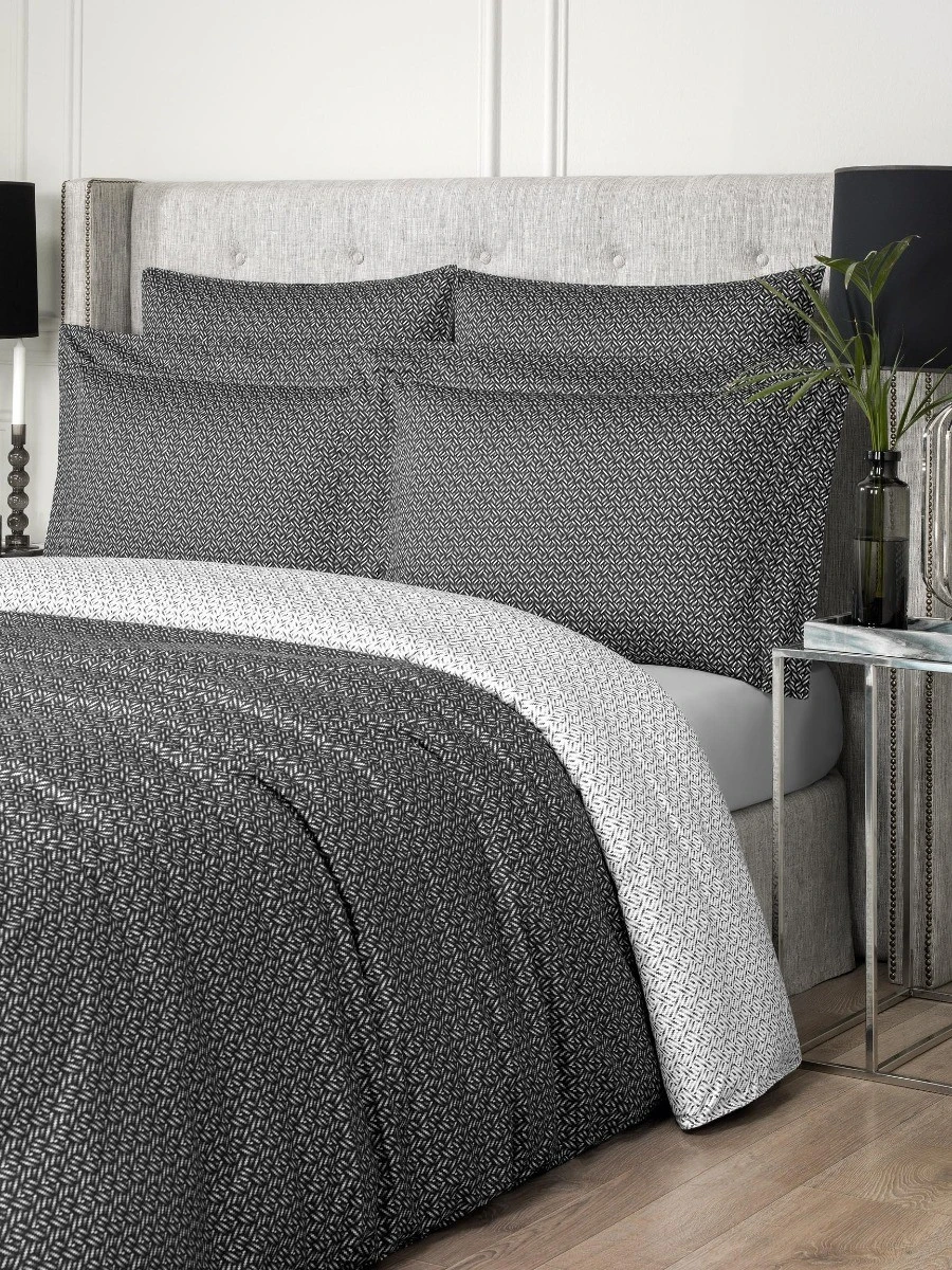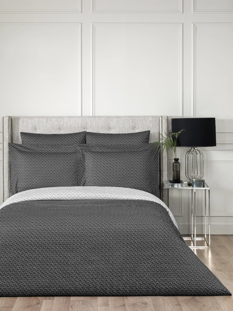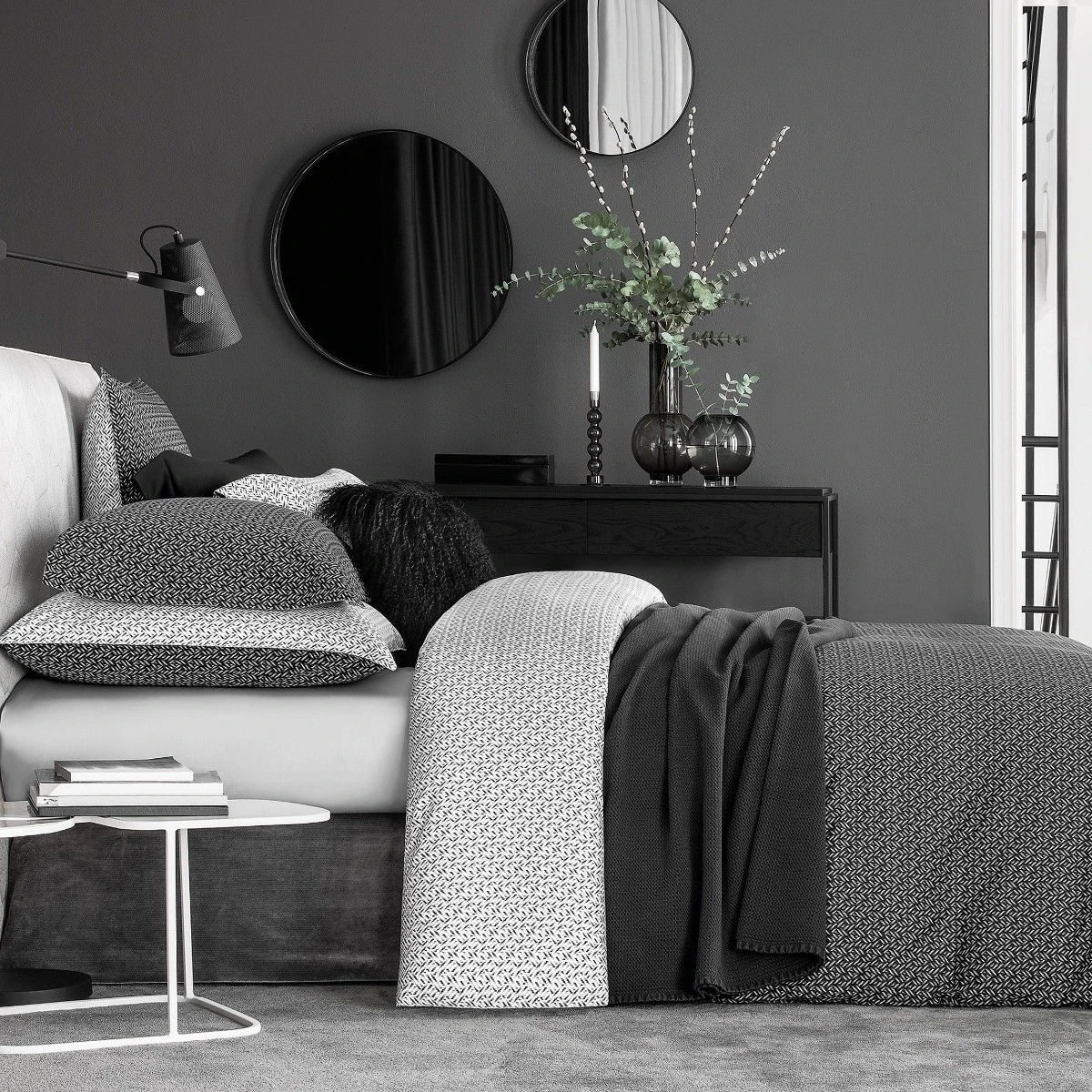 ‘Kennet’ is a strict men’s design and stylish contrast: only two colors are used in the set-rich anthracite and white. The small geometric print on the linen fabric resembles an original canvas woven from ribbons. The set is double-sided: the monochrome pattern is mirrored on the back of the duvet cover and pillowcases.