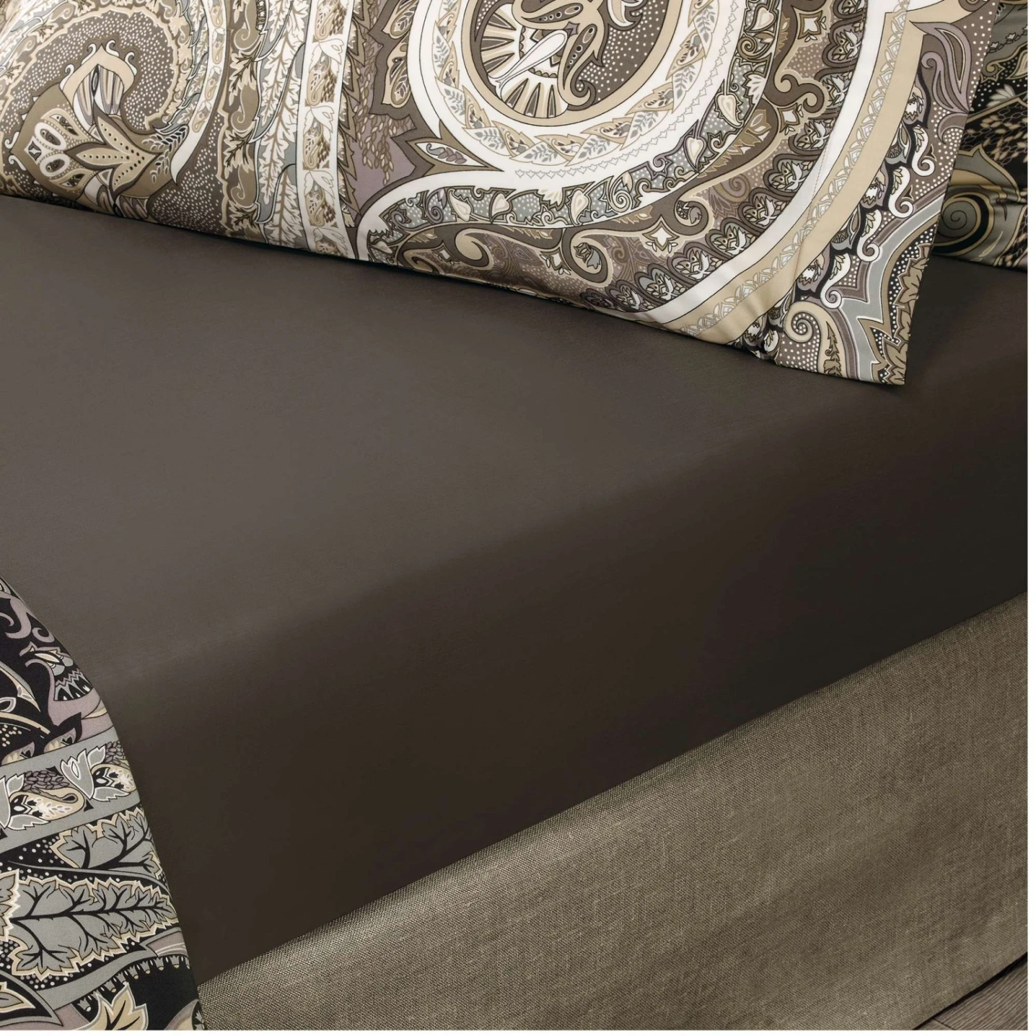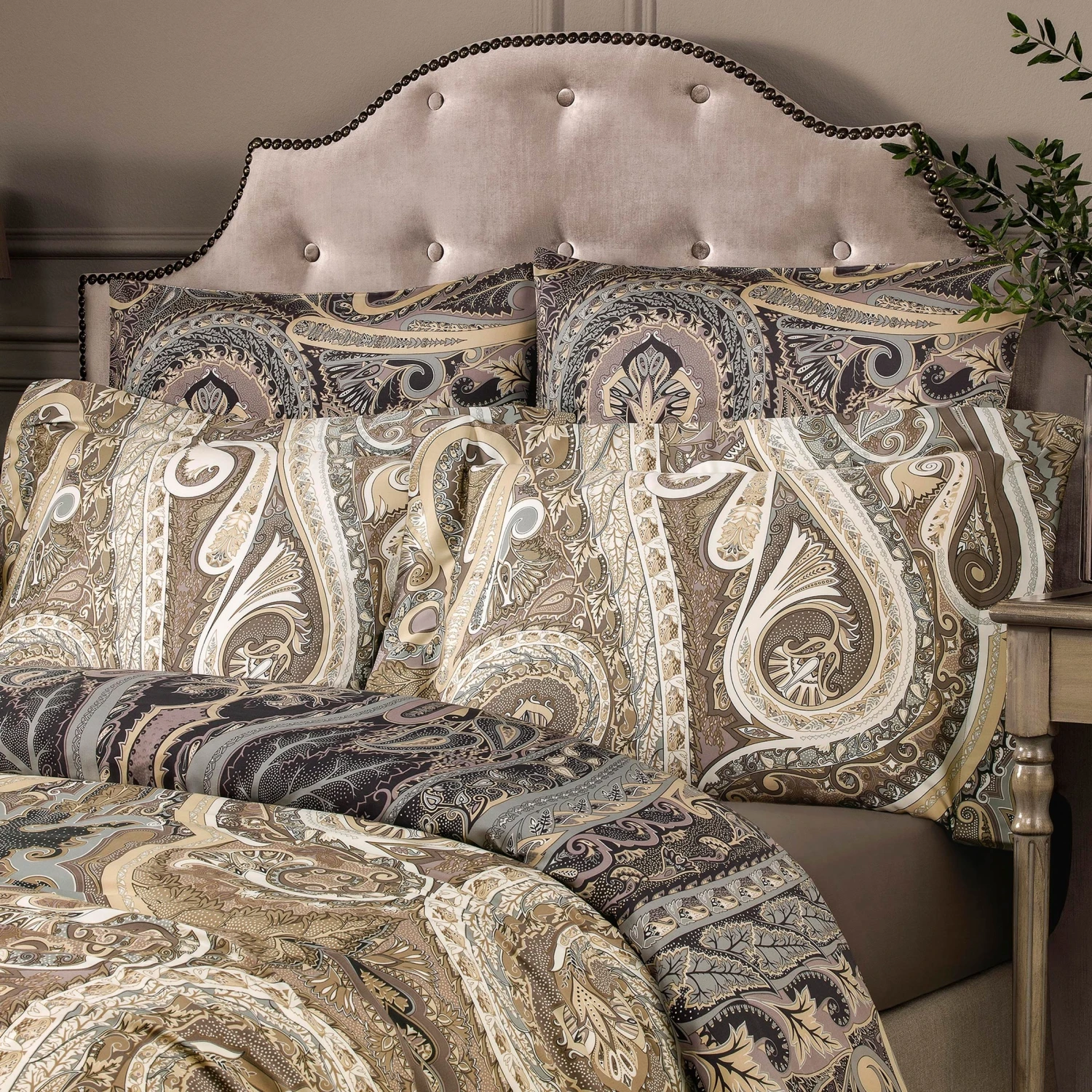 An intricate pattern in the form of a drop with an abundance of small details was used in traditional textiles and paintings. This ancient ornament is fascinating, complex smoky-brown shades of fabric look very nice and do not distract attention from the whimsical curves of lines and an abundance of small details in the picture on the fabric. The set is made of eucalyptus fiber, this material combines the best properties of flax, silk, and cotton. Bed linen is very soft and silky, extremely pleasant to the touch. Eucalyptus fiber is well breathable, has the property of climate control, is perfect for people with sensitive skin.