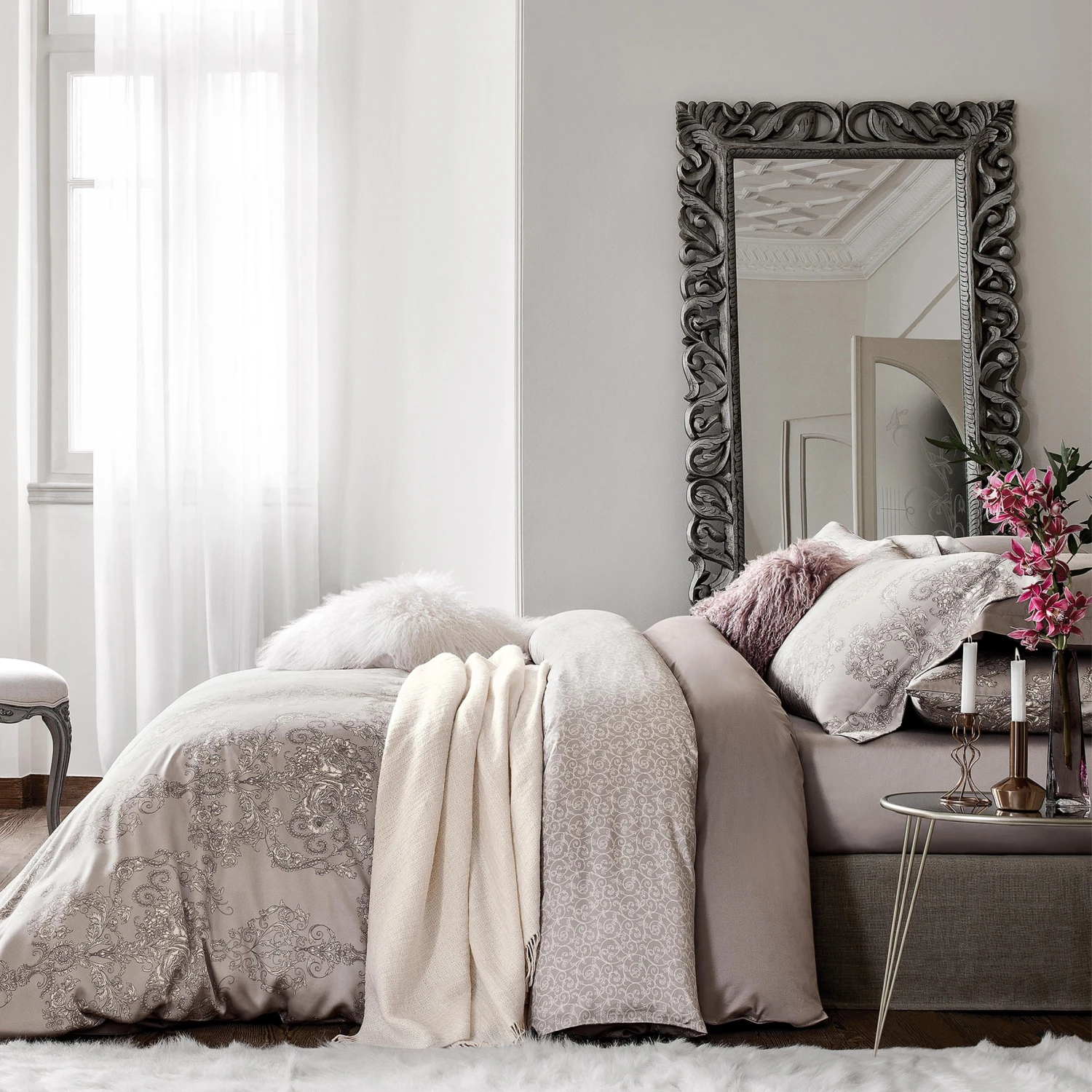 It offers distinctively high hygienic, ecological and performance properties. A luxurious French Rococo style pattern adds an alluring charm and aristocratic elegance in a combination with the color milky coffee cappuccino.