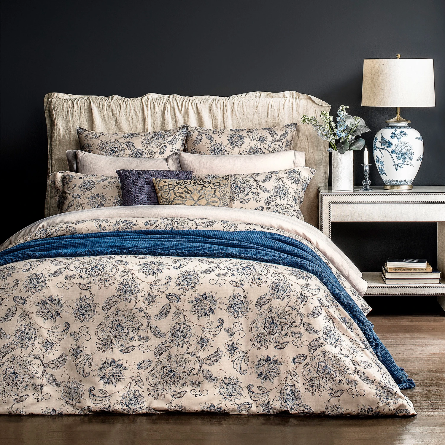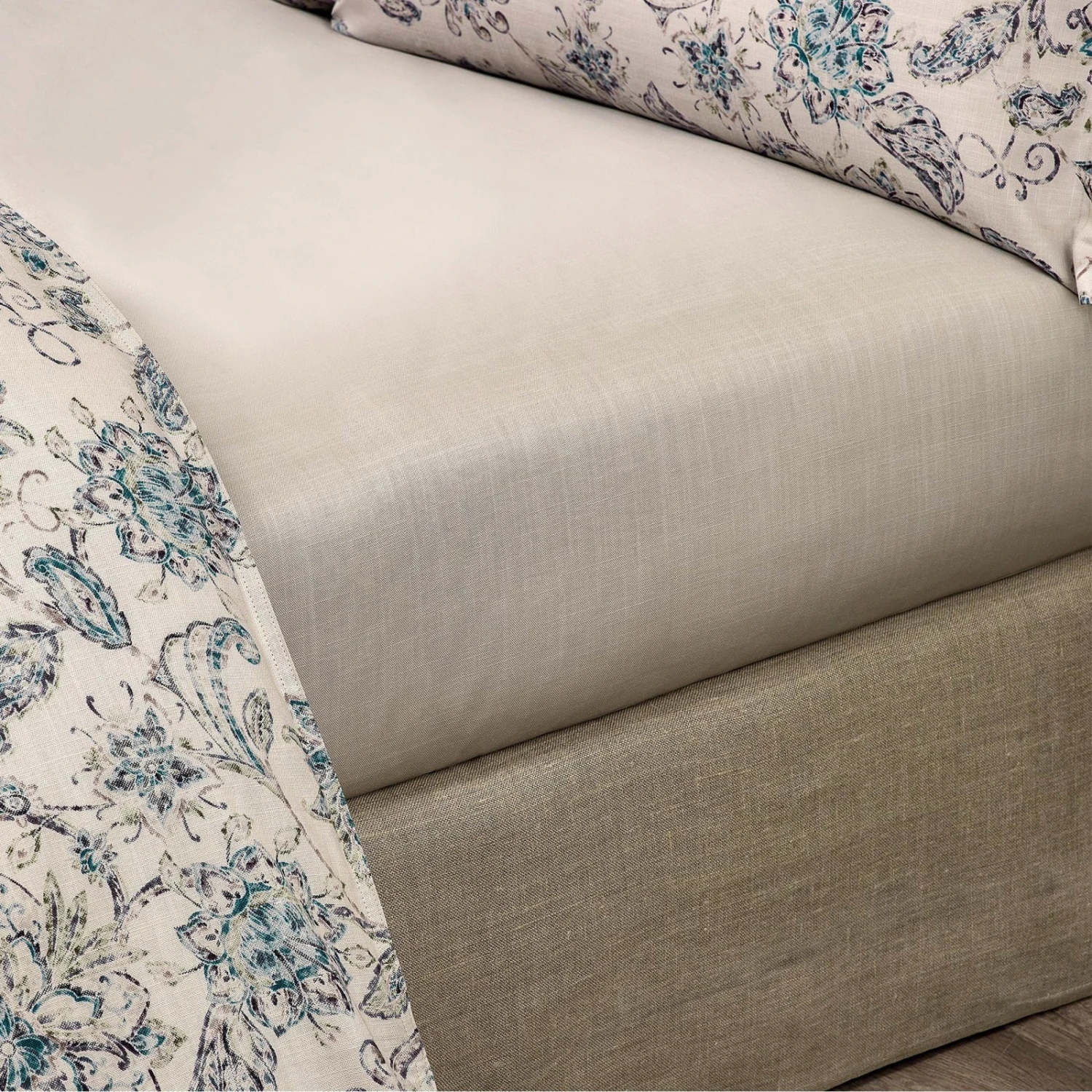 Bedding set Madeleine features a distinctive pattern in ethnic style created by our designers for the new material. They achieved that by using the transparent vintage watercolor technique crafted by hand, therefore offering a feel of naturalness, lightness and antiquity. Eco trend makes a perfect combination with an equally popular vintage style Shabby chic, allowing Togas designers to create a harmonious blend of two trends in one bedding set.