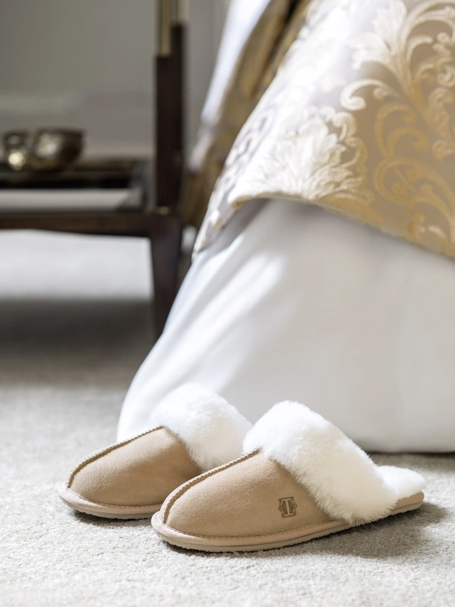 This is a natural material that provides good air circulation, perfectly absorbs excess moisture, so Slippers will give dry heat and will not cause discomfort from overheating and sweating. Inside the model ‘Amanda’ – snow-white sheepskin, it also frames the product from the outside, beautifully contrasting with beige suede. Such home shoes will look good with a warm Terry robe, knitted home suit, knitted sweater.